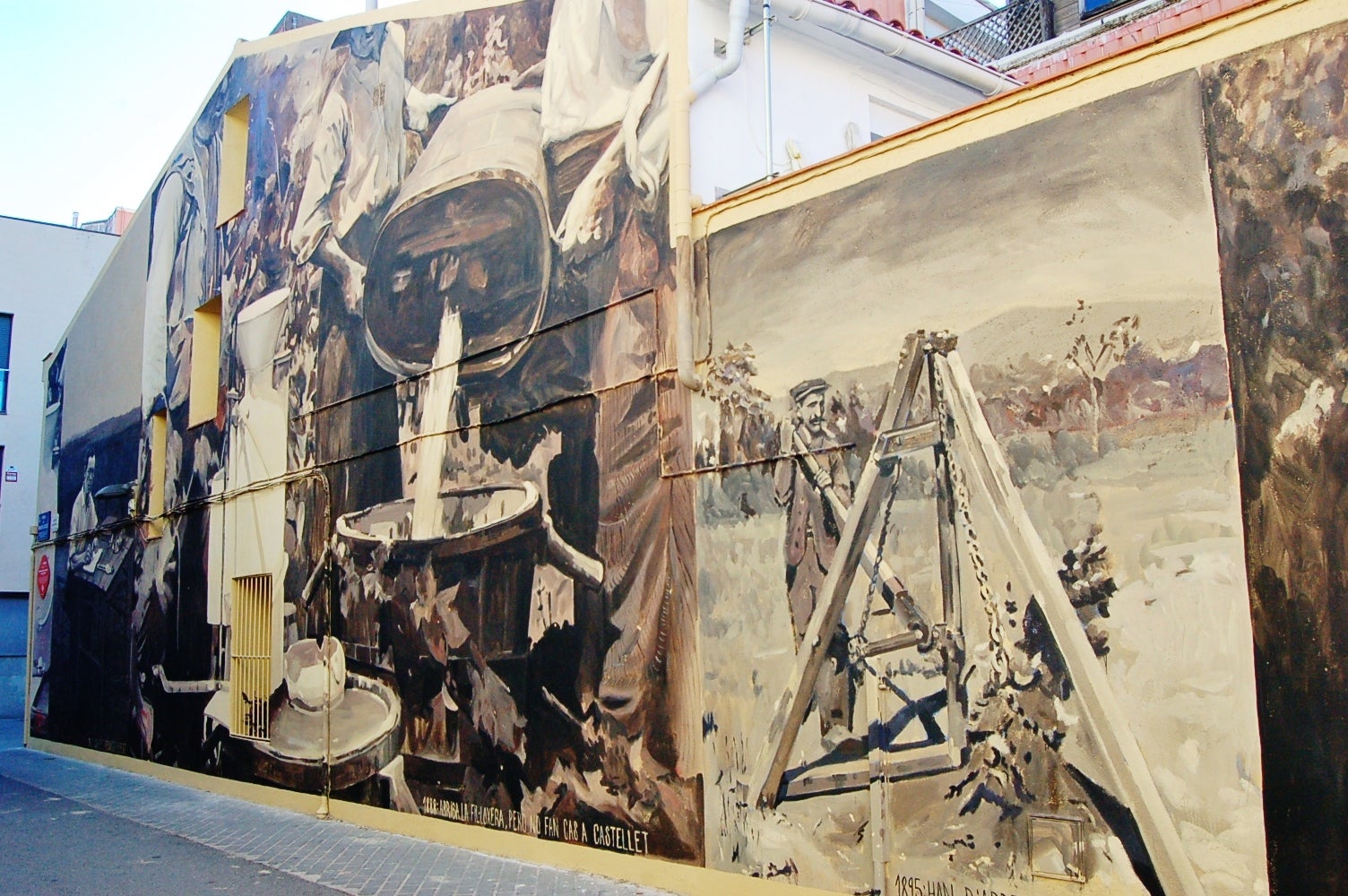Aquest dimarts, dia 21 d’octubre, l’Associació de Veïns de l’Antic Poble de Sant Pere ha inaugurat el segon mural històric i costumista. Es troba ubicat al carrer de Bonaventura Castellet, amb cantonada carrer Major de Sant Pere, i és la segona peça, d’aquestes característiques, que s’instal·la al barri. La descoberta de la pintura ha estat rebuda amb molta expectació, i arriba just un any després de donar la benvinguda a un mural dedicat a les masies santperenques i de com la seva dedicació a la vinya va conduir el poble a la seva màxima esplendor.