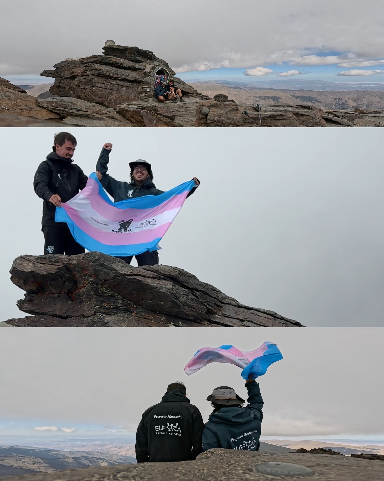 Vam fer l’acció del 8 al 14 de setembre. Hi vaig anar amb un altre noi trans, en Patrik Gilmartin, que vaig conèixer en una estada de famílies trans de l’Entitat Euforia Familias Trans, que també ha donar suport a aquest projecte. Viu a Benasc i és alpinista. Tots dos tenim històries positives: les nostres famílies ens estimen tal com som i podem viure amb llibertat. Això ens va unir molt, i també l’amor per la muntanya. Vam decidir fer cims per explicar la nostra història de superació amb un final feliç, perquè massa sovint la transsexualitat es tracta des d’un prisma trist i dramàtic i aquesta no es la nostra historia, encara que sabem que això encara pasa molt.