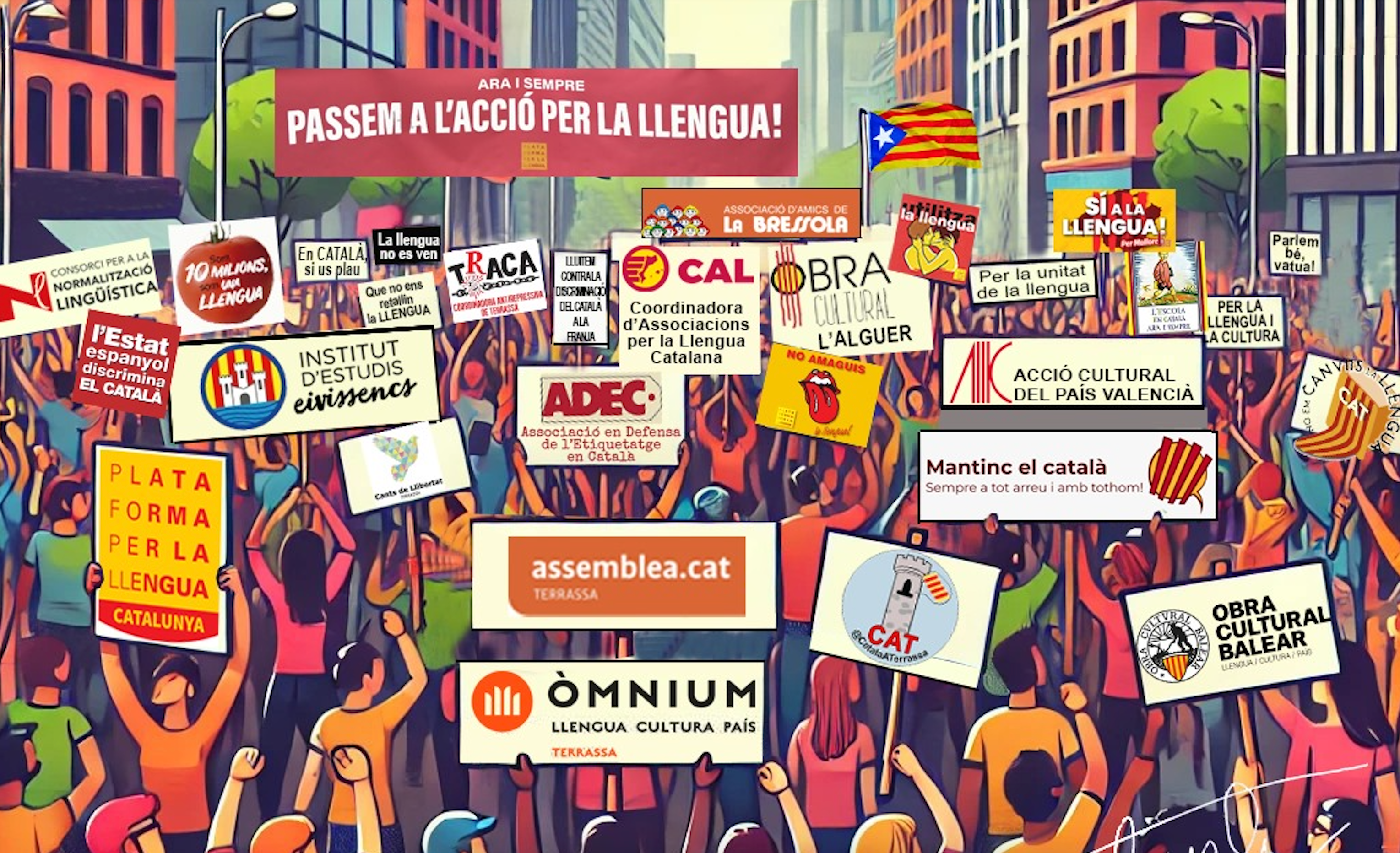 Darrerament han proliferat noves iniciatives d’associacions, col·lectius, grups, etcètera, que tenen com a objectiu la defensa de la llengua. No és gens d’estranyar ja que, com tothom sap, el nostre idioma propi té la salut delicada, i ha patit un procés de degradació i de manca d’ús social en la nostra societat. És com si no estigui de moda parlar-lo en determinats sectors. Per una banda, és clar, les causes vénen dels nostres enemics, dels que pretenen anihilar-la, però també nosaltres mateixos en tenim una part de culpa, bàsicament per dues mancances: consciència d’aquesta degradació i autoestima. Això juntament amb dosis de tantsemenfotisme lingüístic i sobredosis de canviar al castellà de manera totalment innecessària. La nostra llengua ha patit fortes escomeses per sectors de la societat, que han tingut i tenen l’objectiu de reduir-la a un fet folklòric i provincià, o fins i tot a sotmetre-la i fer-la desaparèixer. Alguns van néixer amb aquest objectiu, i encara que ara els que hagin desaparegut han estat ells, la seva feina ha quedat feta. I darrerament, arran de la nova onada catalanofòbica que s’ha desencadenat arreu dels Països Catalans, especialment al País Valencià i a les Illes amb l’arribada de la ultradreta al poder (PP- Vox), són més exemples ben lamentables de com el català ha estat i està menyspreat i ultratjat.