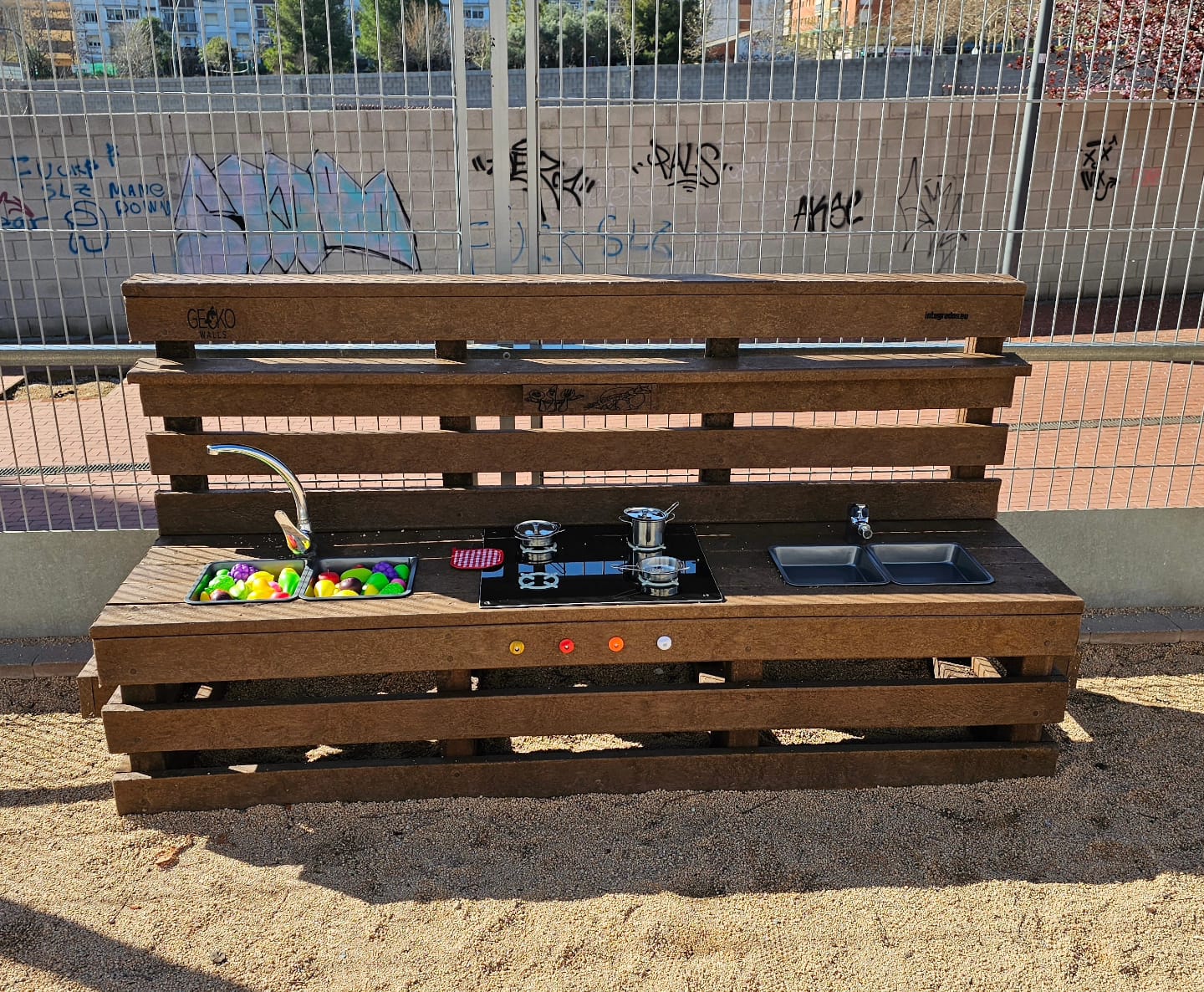 Va ser així com es va començar a treballar en el segon projecte, que ha culminat tot just aquest mes de març i que ha consistit en la incorporació de diferents elements de jocs. “Es va valorar canviar algunes estructures antigues, fer pintures al terra de joc i anar introduint elements, com ara una cuineta realitzada amb materials ecològics i sostenibles. L’objectiu és anar fent més amable l’espai de joc”, explica Zamora, tot recalcant que la principal novetat i un dels punts d’atracció és la gran estructura de puja/baixa feta amb matèries naturals.