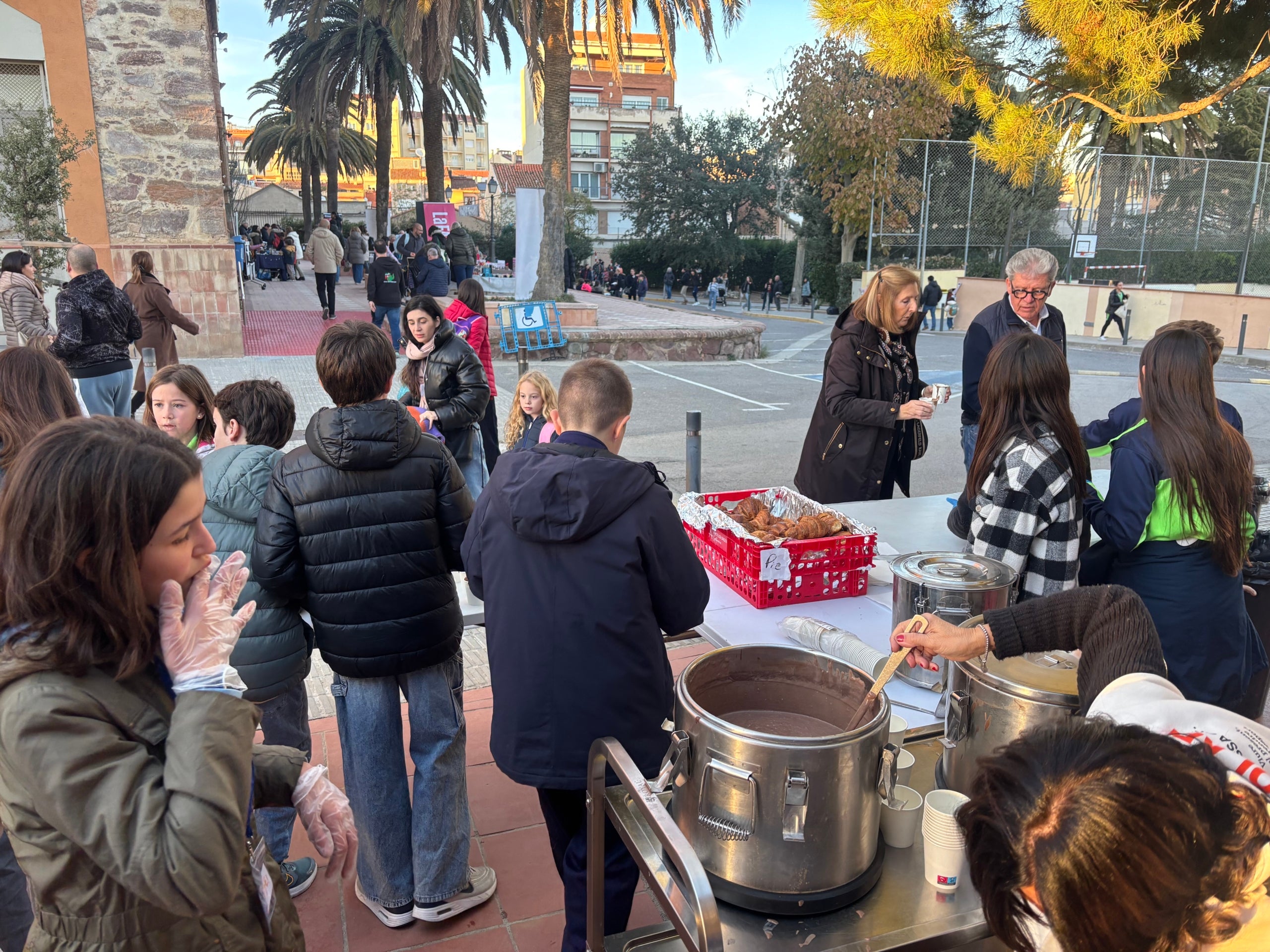 Paral·lelament, es va organitzar una xocolatada solidària en benefici de La Marató, que va tenir una afluència molt destacada: la cua va arribar des de la plaça del Centenari fins al carrer Cisterna. A l’entrada del centre, un mercat solidari va permetre donar visibilitat i suport a diverses entitats que hi van participar: Fundació Vicenç Ferrer, Oberts al món, Fundació Ramón Martí Benet, Associació Raquel Cirera, Can Colapi, Càritas, Avan, SanFilippo, Mua Solidaris, Policies x Valientes, La Fact i Candela.