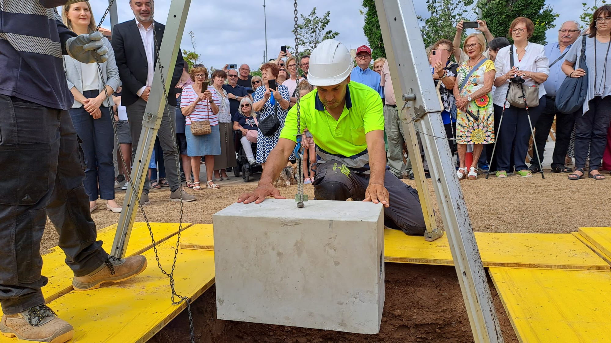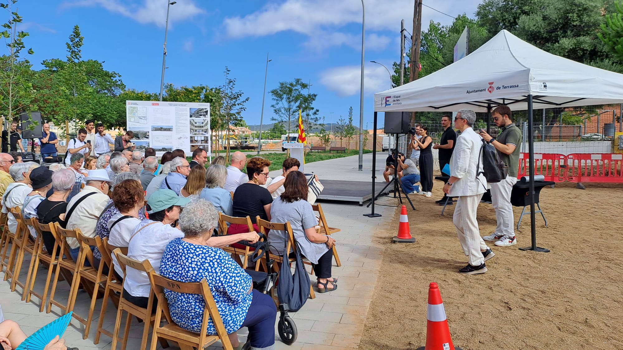 Aquest dilluns, 28 de juliol, ha arrencat la construcció del futur equipament públic per a gent gran Sant Pere Nord de Terrassa, que comptarà amb una residència i centre de dia. Per commemorar aquest dia, s’ha celebrat l’acte de col·locació de la primera pedra, que ha comptat amb la presència de l’alcalde de Terrassa, Jordi Ballart; acompanyat de la consellera de Drets Socials i Inclusió, Mònica Martínez i un representant de la Comissió per a les Residències Públiques de Terrassa, Josep Antoni Sánchez.