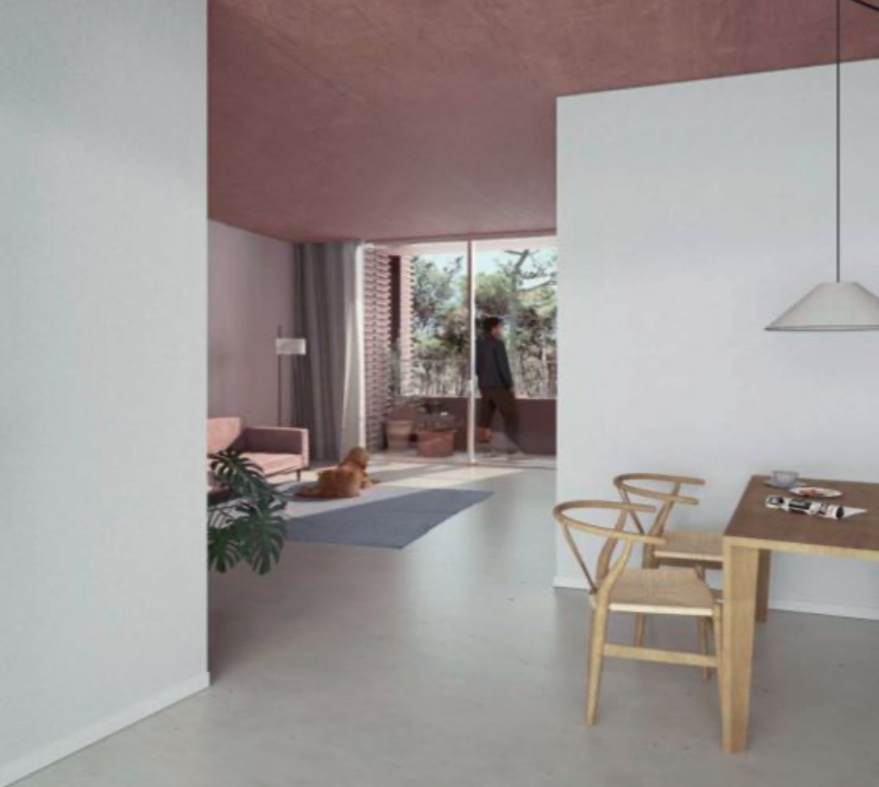 Karakusevic Carson Architects i Bajet Giramé proposen un edifici de tres volums amb obertures en tres dels quatre costats, creant així un pati interior semi-obert. El jurat ha valorat la “relació entre planta baixa i exterior, amb uns accessos i serveis comuns que s’aglutinen al pati interior de l’illa, de manera que es crea un espai de pas, minimitzant així els possibles problemes de seguretat”. El projecte aprofita el desnivell del terreny per crear un edifici amb dues plantes baixes que permet, d’una banda projectar més habitatges i de l’altra incloure locals comercials a la promoció.