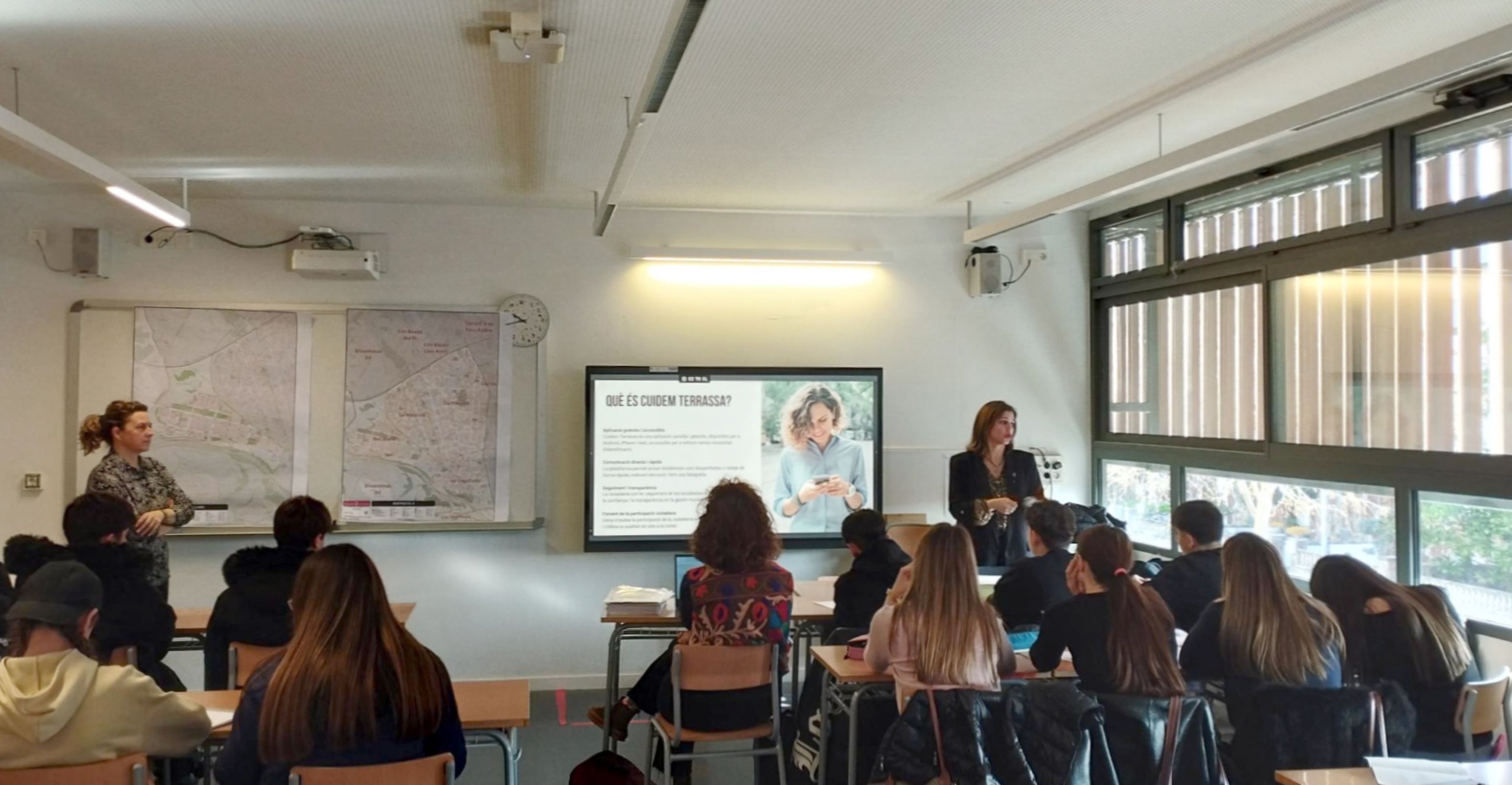 La tinenta d’alcalde de Serveis Generals i Govern Obert, Laura Rivas, ha estat l’encarregada d’explicar als alumnes de l’Institut Les Aimerigues el funcionament d’questa aplicació. En concret, s’ha dirigit a un grup d’alumnes d’ESO que ja realitzen serveis comunitaris i a segon grup de joves de batxillerat que estan cursant l’assignatura de Geologia i Ciències Ambientals. A partir d’aquí, la voluntat és crear dos grups que aniran a impartir la formació al Casal del Roc Blanc i al Casal Cívic i Comunitari de La Maurina.