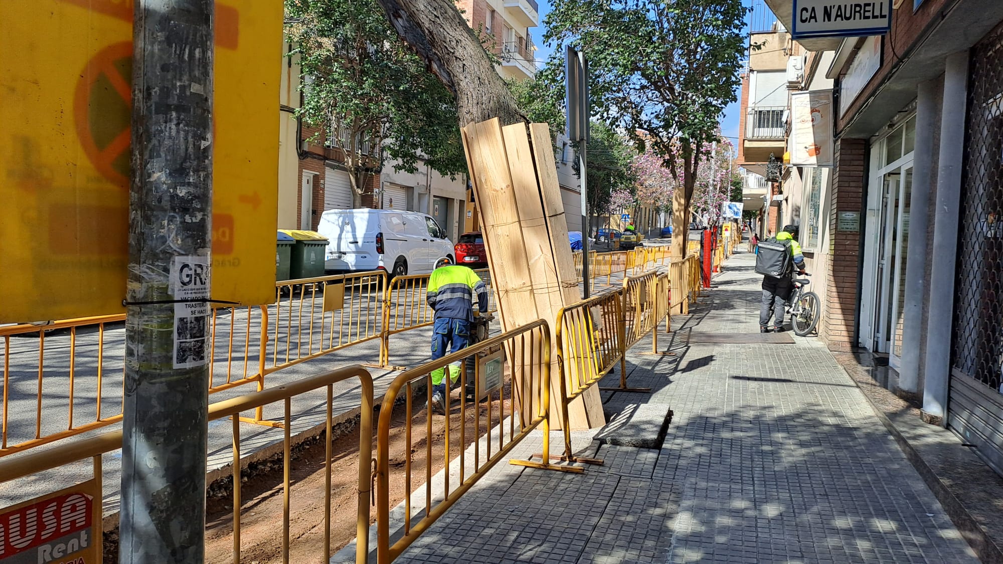 Durant les darreres setmanes, s’han executat unes obres en un cablejat elèctric davant del portal 130, les quals s’estan realitzant molt a prop de la línia d’arbres que hi ha a la vorera. Aquest treballs, juntament amb les pluges recents, han provocat que el sòl de la zona cedís i que un dels arbres s’inclinés.
