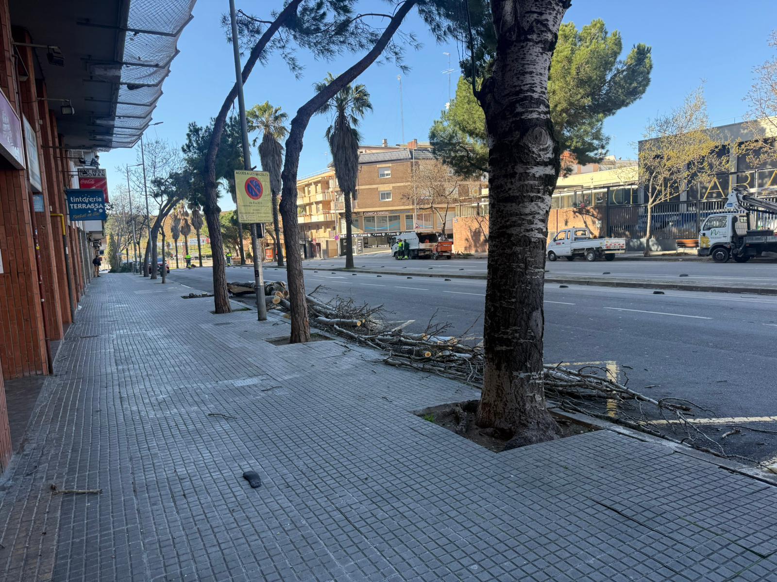 Les ratxes registrades han superat els 90 km/h a la majoria dels barris, amb especial virulència al Centre, Ca n’Aurell, Can Boada i Sant Pere, tot i que els danys ocasionats han estat ben repartits. Més enllà dels contenidors bolcats, s’han produït caigudes importants d’arbres i també planxes metàl·liques i de fibrociment que han sortit volant. També s’han produït esfondraments de murs i parets a la via pública, especialment impactants al carrer de la Rioja, a l’avinguda del Parlament, o al passeig 22 de Juliol. Les grans avingudes, parcs i jardins han patit de valent el temporal. Podeu fer un cop d’ull a les incidències i més fotografies que MónTerrassa ha recollit al llarg de tot el matí, en aquesta notícia.