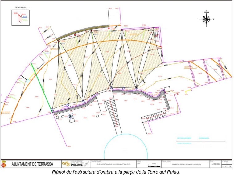 Davant d’aquesta situació, per aquest 2026, l’Ajuntament de Terrassa ha comunicat que provarà un nou sistema a la Torre del Palau. En les properes setmanes, s’intal·larà una coberta tèxtil. “S’ha buscat un material més reforçat, de membrana tèxtil tècnica d’alt rendiment elaborada amb polietilè d’alta densitat microperforat, dissenyada per donar resposta a una alta exposició ambiental”, ha explicat la regidora d’Obres Públiques i Manteniment Urbà, Montserrat Alba. Ocuparà una superfície de prop de 200 metres quadrats, i l’estructura que l’aguantarà també serà diferent. S’ha optat per posar-hi set pilars metàl·lics que aguantin set cobertes triangulars, i no una gran lona rectangular, com havia estat. I un dels factors importants és que serà desmuntable. La coberta compta amb un pressupost per contracte (amb IVA) de 47.734,09 euros.