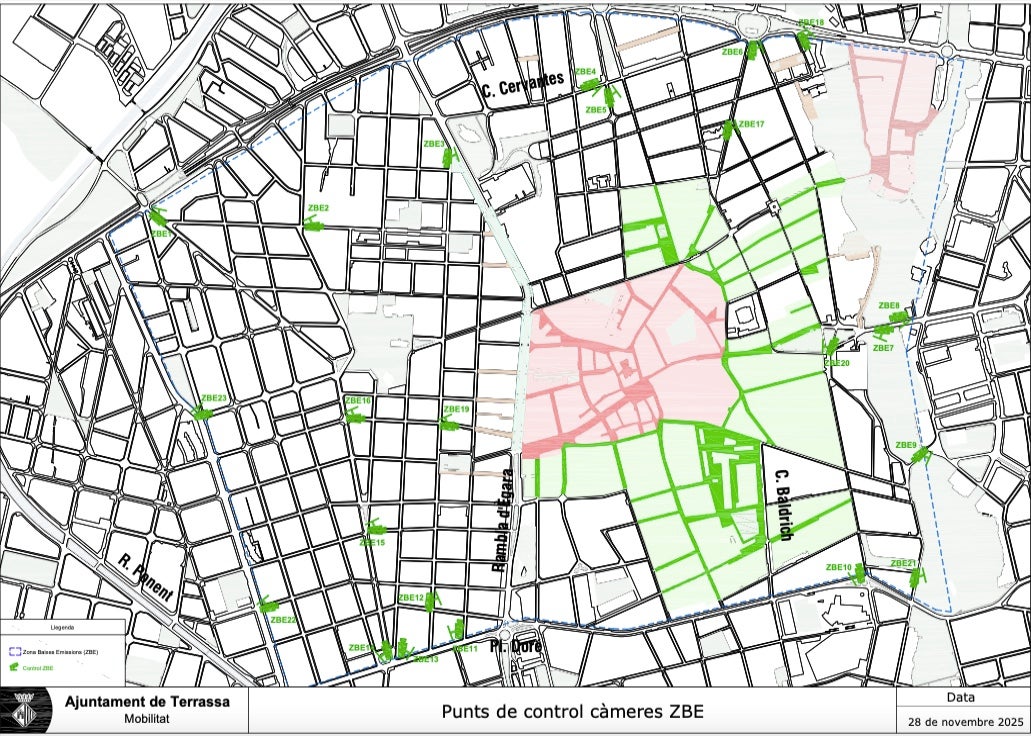 Les càmeres de la Zona de Baixes Emissions de Terrassa ja sancionen. Aquest dilluns, dia 1 de desembre, els vehicles que no compleixin amb els criteris mediambientals i que entrin dins de l’àrea restringida seran multats. Després d’un període de prova que va iniciar-se el maig de 2025 fins ara, i en què l’Ajuntament ha fet una campanya informativa per alertar als conductors de la implementació de les restriccions de mobilitat en el cor de la ciutat, ara es passa a la fase següent: les sancions.