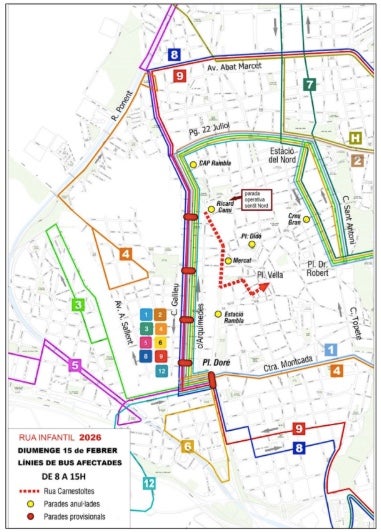 Quant a la rua infantil de diumenge, començarà a les 11 h des de la Rambla d’Ègara amb cantonada Doctor Cabanes. Per això, la part sud del cèntric vial quedarà tallada a partir de les 8.30 h, degut a la concentració de les comparses participants. Els autobusos desviaran la circulació pels carrers de Galileu i d’Arquimedes des de primera hora del matí i fins passades les 14 h.