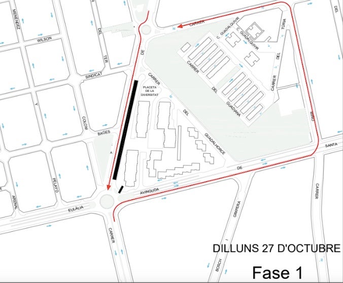 • Tall total en sentit est de l’avinguda Santa Eulàlia, entre el carrer Guadalhorce i l’avinguda Glòries Catalanes.