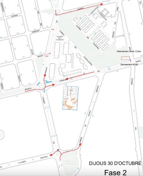• Tall total sentit Nord del carrer Colom, entre la plaça de la Tecnologia i l’avinguda Sant Eulàlia.
