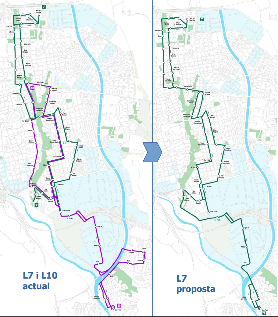 “La nova proposta de fusió entre les línies 7 i 10 suposa un disseny encara més absurd i ineficient, i no reduirà les freqüències com preveuen des de Mobilitat”, s’afirma en un comunicat de la junta de l’associació de veïns. “Tampoc està pensada pel conjunt d’usuaris, sinó només per satisfer els polígons industrials de l’entorn de la riera de les Arenes”, s’afegeix d’aquesta futura L7 rebatejada Les Fonts-Pla del Bon Aire i que pretén fer baixar dels 36 minuts actuals als 20 la freqüència, sense passar pels carrers de Sant Antoni, Mas Adei, Garcia Humet i Topete. Però alhora, deixant de banda les parades de l’Arxiu Comarcal i Les Quatre Carreteres del Segle XX perquè privilegiaria el pas pel barri de Can Palet tant en l’anada com en la tornada per arribar a l’Estació del Nord. “Calia haver mantingut la línia 10 fins a l’Estació del Nord, i fer-ne una altra per atendre els polígons industrials”, es reclama en el comunicat fent referència als polígons entremig de Les Fonts de Can Parellada.