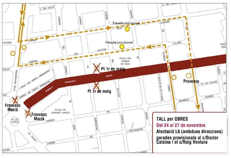 – Parades anul·lades: Francesc Macià i Pl. Primer de Maig.