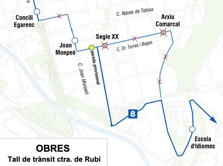 Aquest tall de trànsit comportarà afectacions importants a la mobilitat en aquesta zona, tant en transport públic (L8, L9 i L10) com en vehicle privat. D’aquesta manera, des de Mobilitat alerten que des d’aquest dilluns, els autobusos de la línia L8 (avingudes) circularan pel carrer de Guillem de Muntanyans i l’avinguda de Santa Eulàlia. No s’aturaran a les parades del Segle XX i de l’Arxiu Comarcal, que quedaran anul·lades, i es senyalitzarà una parada provisional al carrer de Torras i Bages, 153. Les parades ‘Arxiu Comarcal’ (línies L9, avingudes i L10, direcció Estació del Nord) i ‘Segle XX’ (L9, avingudes) no s’anul·laran. Per culpa d’aquesta desviació del seu itinerari habitual, des de l’Ajuntament alerten que els autobusos poden acumular retards i circular fora del seu horari habitual.