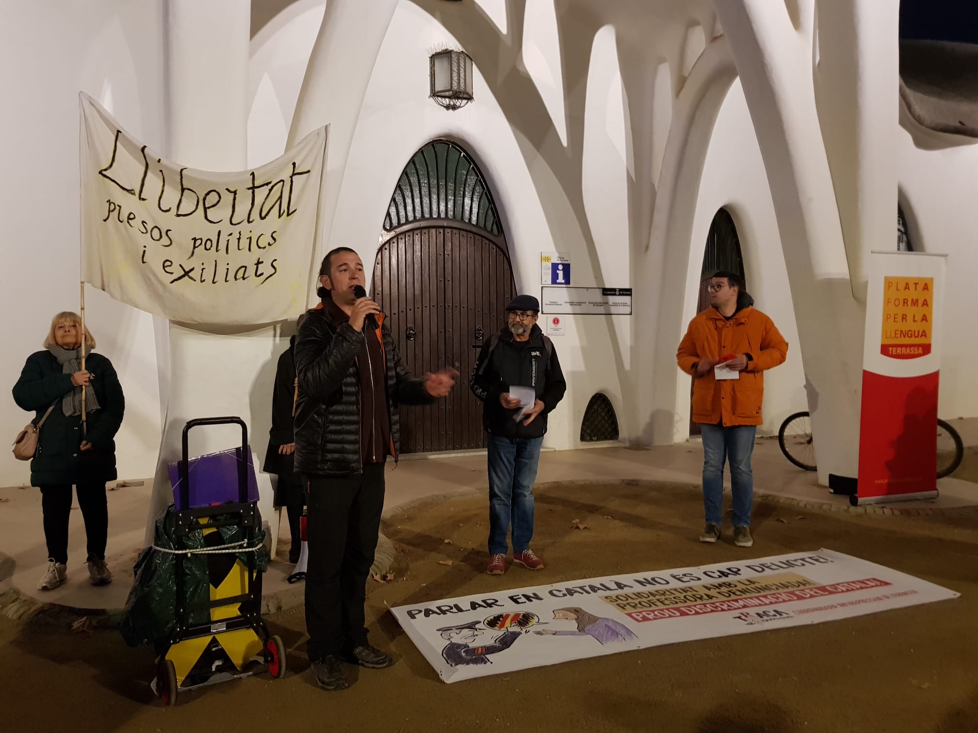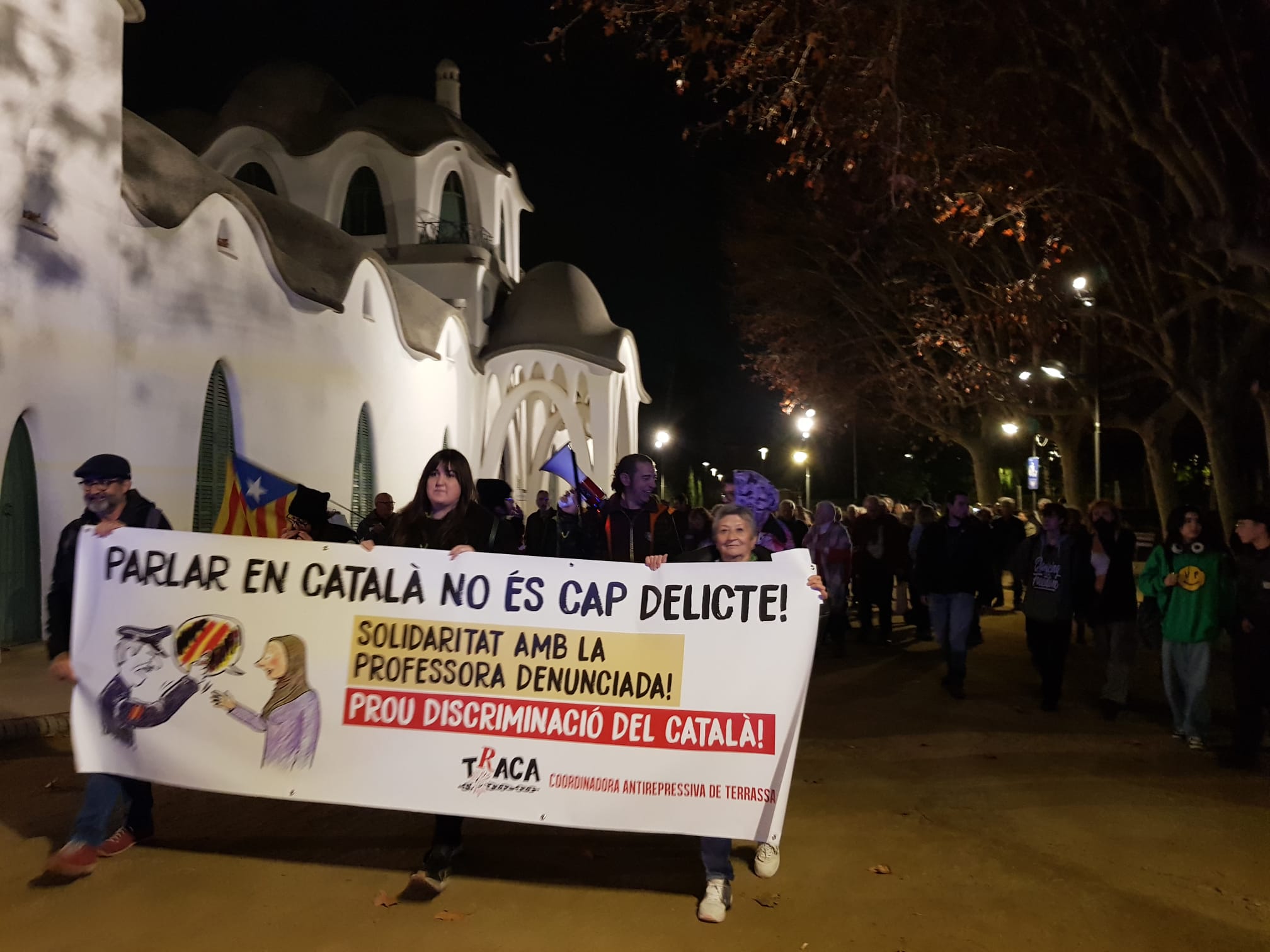 PRIMER – Condemnar els fets ocorreguts, els danys ocasionats i donar suport explícit a la professora de català i veïna de Terrassa afectada, mitjançant un comunicat públic i una trobada amb la professora per expressar aquest suport.