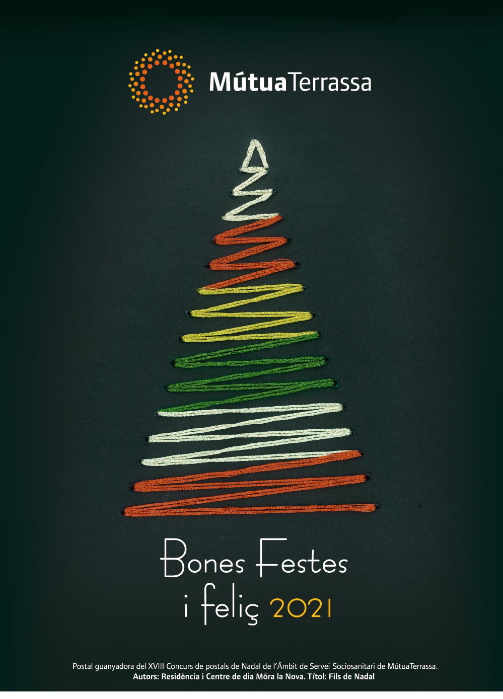 La Residència i Centre de Dia La Pineda, ubicada al carrer d’Icària, 42, de Terrassa, ha estat la guanyadora del concurs de Postals de Nadal, organitzat per MútuaTerrassa. Es tracta de la dinovena edició consecutiva d’aquest certamen, en el qual hi participen els residents dels diferents centres de dia i residències geriàtriques, de salut mental i diversitat intel·lectual, gestionades per la Fundació Vallparadís de Mútua Terrassa. Aquest 2021, amb la participació de 20 centres (dos més que l’any passat), la postal guanyadora ha estat “Límbic”, de la residència i Centre de Dia La Pineda.