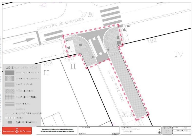 La intervenció d’ampliació de la vorera est, dona continuïtat a les obres que es van executar a l’abril de l’any 2024, dins del Projecte de millora de l’accessibilitat a eixos principals de vianants de Terrassa, dins la iniciativa “Next Generation”, que van abastar la vorera oest del tram del mateix carrer del Pare Font, comprès entre el carrer de Navas de Tolosa i la carretera de Montcada.