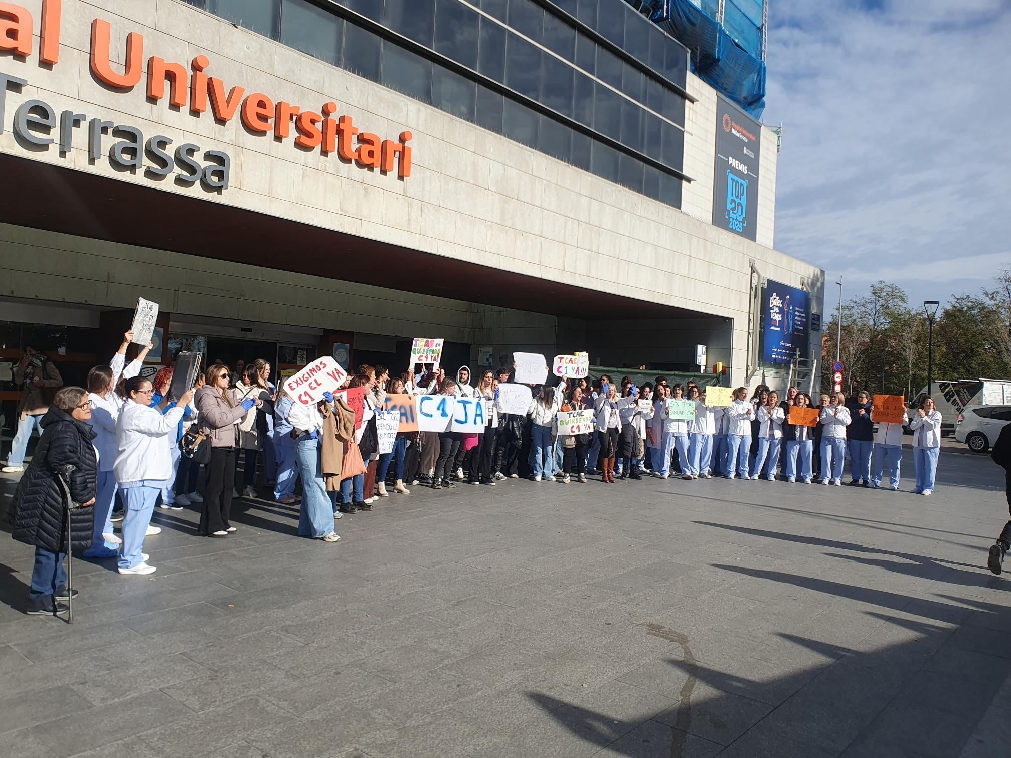 Els Tècnics en Cures Auxiliars d’Infermeria dels centres hospitalaris de Terrassa han participat aquest divendres, dia 28 de novembre, en una convocatòria de vaga. Les aturades han estat convocades a tots els centres hospitalaris de l’Estat, promogudes des del sindicat USO, juntament amb diverses plataformes independents dels TCAEs.