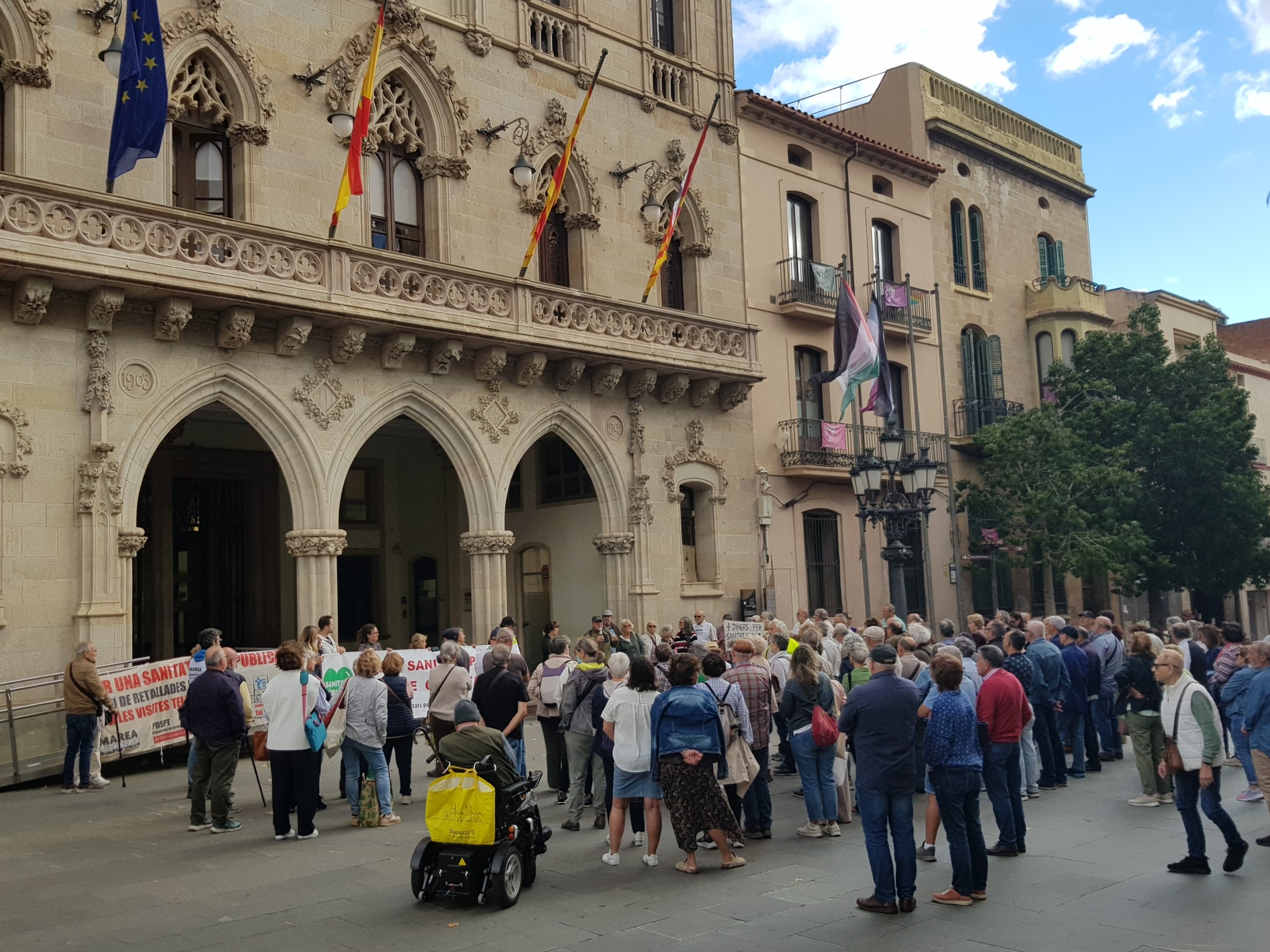 Aquest dijous, dia 23 d’octubre, la Comissió d’Entitats per la Sanitat Pública de Terrassa ha fet una nova reunió de seguiment amb el CatSalut. La trobada, més curta de l’esperada, ha servit per tornar a reivindicar que es compleixin les promeses dels equipaments i reclamar un increment de professionals en l’atenció primària i urgències. En finalitzar, els representants de la comissió han fet balanç i han explicat als ciutadans congregats a les portes de l’Ajuntament les últimes novetats.
