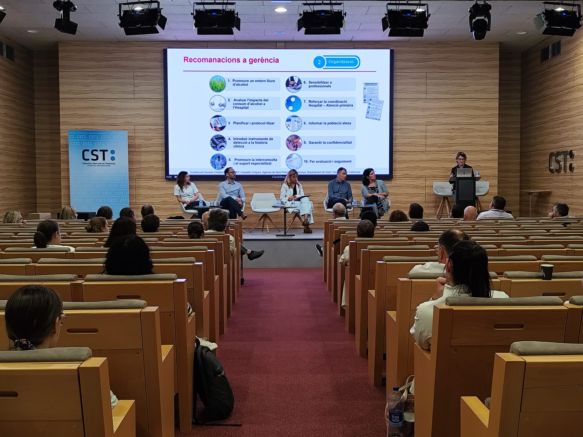 Aquest dimarts, la sala d’actes Joan Costa Roma de l’Hospital Universitari de Terrassa ha acollit una sessió de presentació, orientada als professionals del Consorci Sanitari de Terrassa, d’aquest nou programa, el primer a Catalunya. I és que el CST, amb el suport de MútuaTerrassa, ha acceptat el repte de materialitzar i avaluar l’impacte de les estratègies recollides en el Manual per a la prevenció i l’abordatge del consum d’alcohol i els problemes relacionats en l’àmbit hospitalari, creat per un ampli grup de professionals experts en l’àmbit clínic i de recerca.