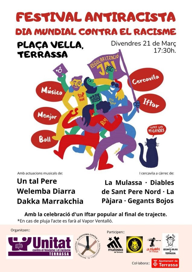 Aquest esdeveniment es durà a terme amb motiu de la commemoració del Dia Mundial contra el racisme, i és un acte que comptarà amb la col·laboració de diverses entitats de cultura popular. En cas que la pluja fes acte de presència, com tot sembla apuntar, les activitats es traslladarien al Vapor Ventalló de Terrassa.
