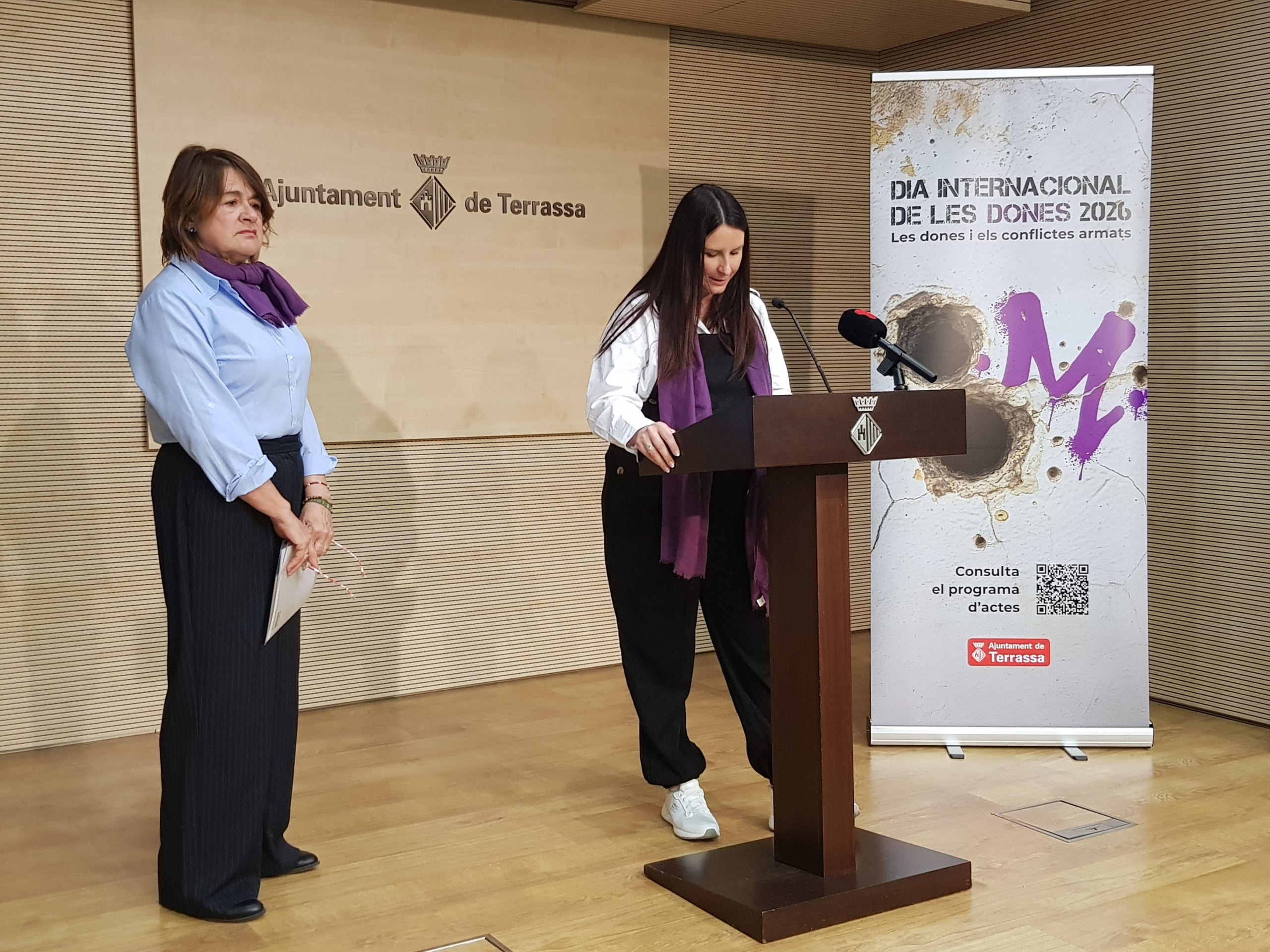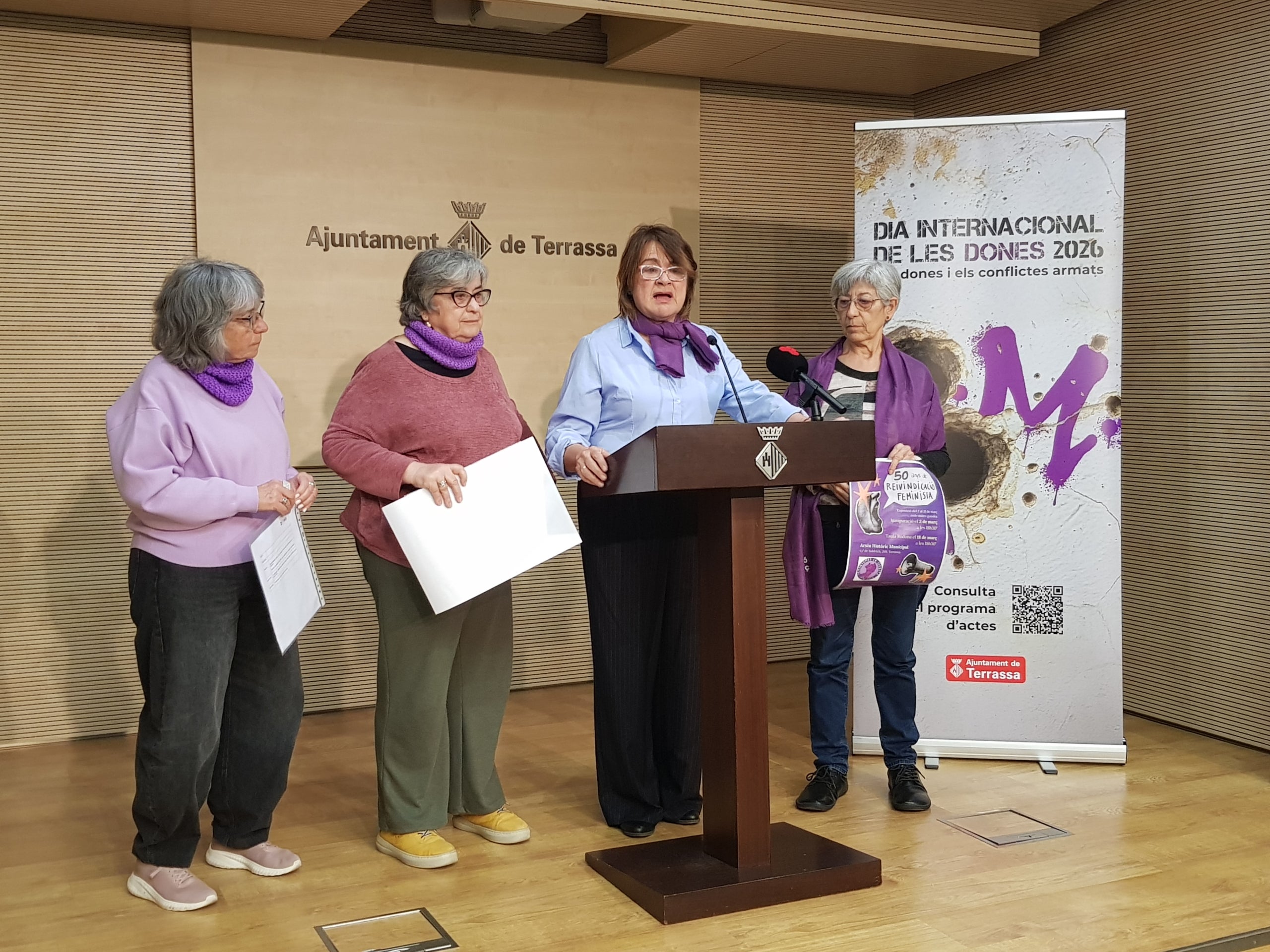 El moviment feminista recorda que va néixer lligat al moviment pacifista, i aquest 2026, des de Terrassa s’ha decidit que aquestes dones que han viscut o que viuen en zones de conflictes armats deixin de ser “invisibles”, un crit a reconèixer el seu coratge, dignitat i lluita, a la cogovernança i al sentiment comunitari, com ha recalcat la regidora de Polítiques de Gènere, Lluïsa Melgares.