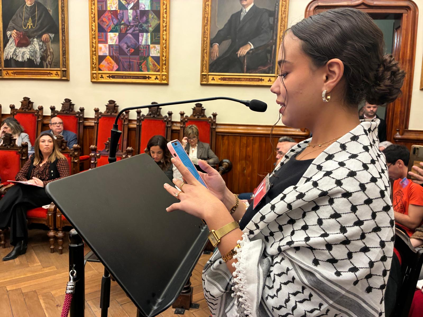 Durant la seva intervenció, Zineb El Asri Ajaji, representat del col·lectiu, ha instat a l’Ajuntament de Terrassa a que “expressi el seu suport amb el poble palestí” i que “doni suport públicament a la infància i l’adolescència palestina a través d’un comunicat publicat”. Així mateix, El Asri ha demanat que el Consistori faci arribar al govern de l’Estat espanyol un comunicat oficial on expressi el suport a l’alto al foc immediat i l’obertura de corredors humanitaris que “permetin l’entrada a Gaza d’aliments, medicaments i tot el necessari per a una vida digna”.