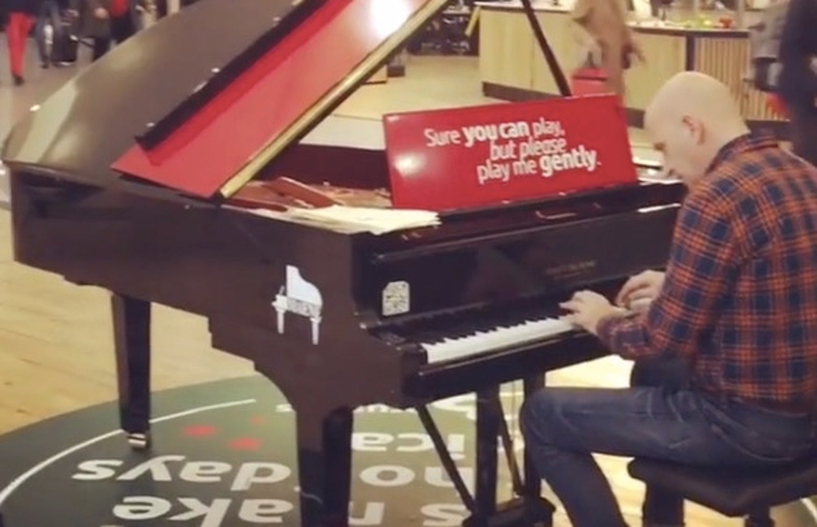 Xavi Coral celebra l’aniversari tocant el piano a l’aeroport de Brussel·les