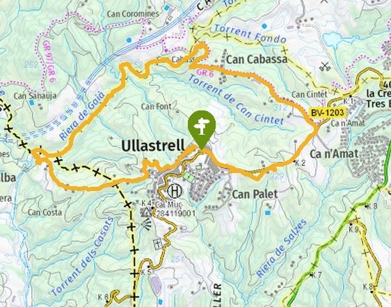 Serà en aquí que haurem de travessar la carretera i seguir en descens per una pista ampla, amb vista esplèndida a la muntanya de Montserrat. Així arribarem fins a la riera de Gaià. Un cop trobada, el camí transita pel seu costat i fins i tot per dins, i això pot fer que després de pluges acabem amb els peus mullats en algun tram. La riera del Gaià ens permet descobrir flora i fauna diversa (ullastres, emborratxacabres, àlbers, pollancres o gatells) escoltar el cant dels ocells i gaudir amb la remor de l’aigua. A més, al costat ens quedarà un alzinar humit -a la riba esquerra- i una pineda de pi blanc -a banda dreta-. La ruta continua fins a l’àrea de la riba de la Llonga, on deixarem la riera per un corriol força inclinat que ens conduïrà fins al camí d’Olesa de Montserrat a Ullastrell. Només quedarà seguir-lo i tornarem al nucli urbà i al punt de sortida.