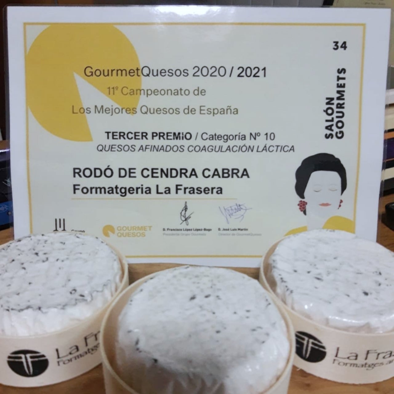 El Rodó de Cendra és un formatge que destaca per una pasta tova que s’elabora a partir de llet pasteuritzada de cabra de granges del Parc Rural del Montserrat i s’arrebossa de cendra alimentària, que aporta un equilibri suau al gust. A la seva categoria, només ha estat superat per Miss Capra, de Productos Artesanos Valdecabras, Candelada (Àvila), i Granizo, Quesos La Rueda del Cabriel, Villamalea (Albacete).